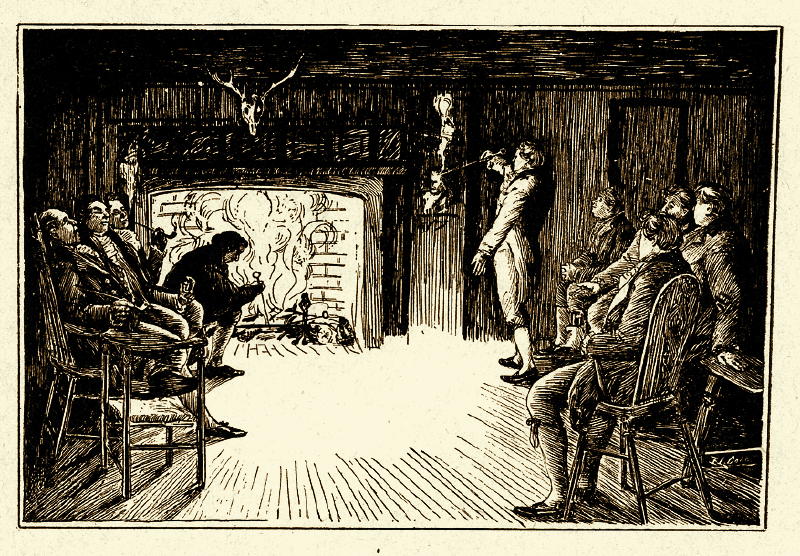 "Years and years ago, when art and conviviality went hand in hand in England, and when the tavern was a clubhouse, it was the custom of the artists to exercise their passing inspirations on the walls around them. A poker, heated red-hot in the fireplace, was their tool. With it they sketched faces and figures—a memory of a scene of nature—an idea for a new ornament—a cartoon of some public man."