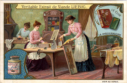 "The art of Burning, or Etching, upon wood with hot irons was sometimes employed by the artists of the Middle Ages. A rich XVth century chest in the Musée de Cluny at Paris was doubtless done in this way."